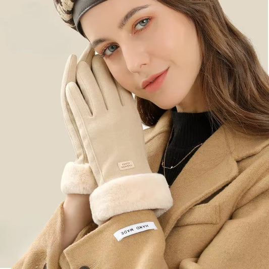 Women Winter Thick Plush Gloves Fashion Warm Suede Outdoor Guantes Lady Touchscreen Driving Gloves Sports Motos Cycling Mittens